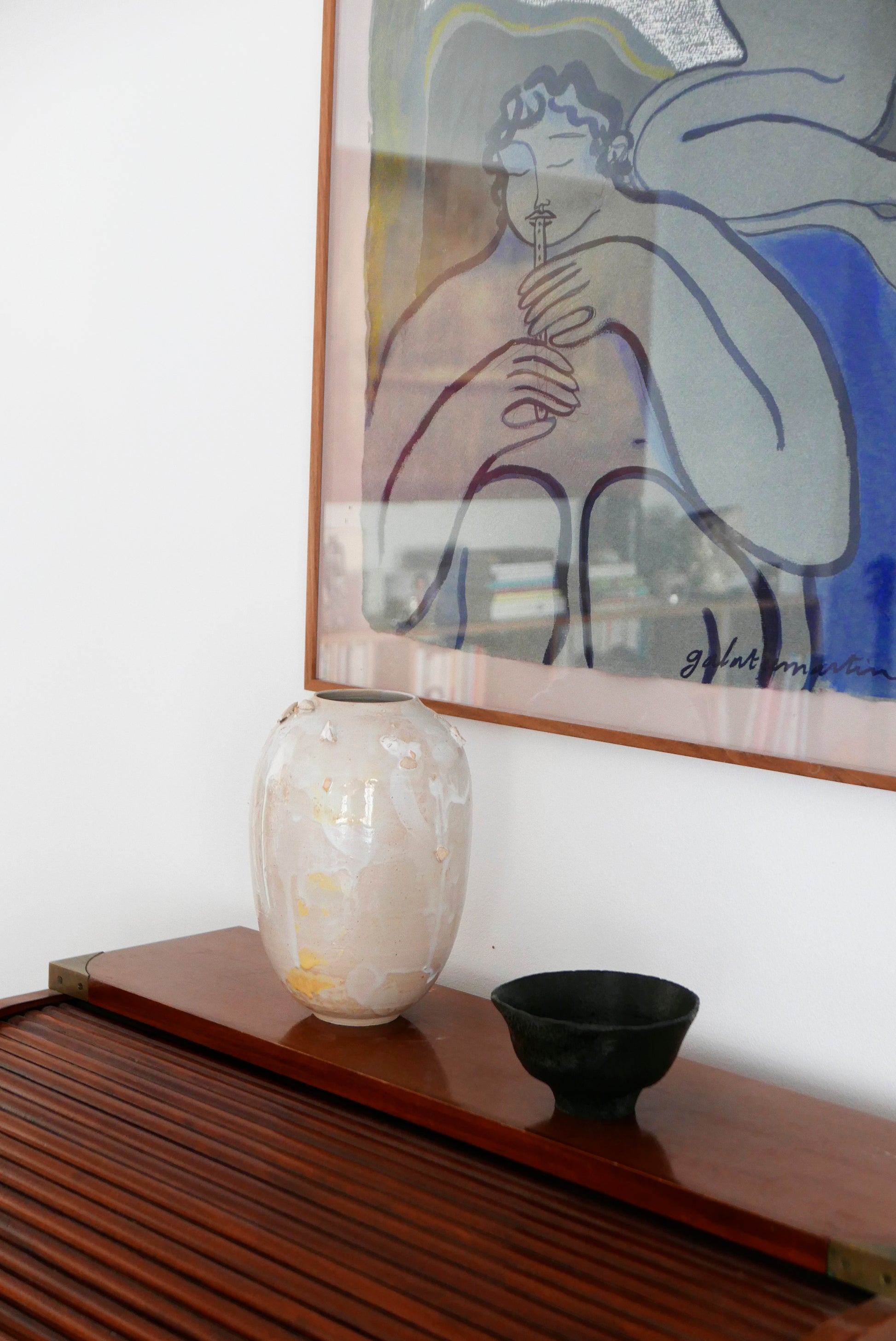 Made in stoneware and porcelain, Cypel’s work manifests as a series of wheel-thrown vessels and innovative lighting pieces that explore the intersection of time, matter, and memory. Her signature collection "Ovetti" features 3 sizes of ovoid forms with surfaces that range from porcelain pristine white to deeply textured landscapes in navy blues and earthy crusty textures that mimics earth's surface, each piece bearing witness to both geological formation and artistic intervention. The ovoid forms symbolise both birth and mortality, echoing both the egg and the urn. Yet, their circularity and absence of a lid make a statement about continuity—an infinite cycle where every ending is also a new beginning